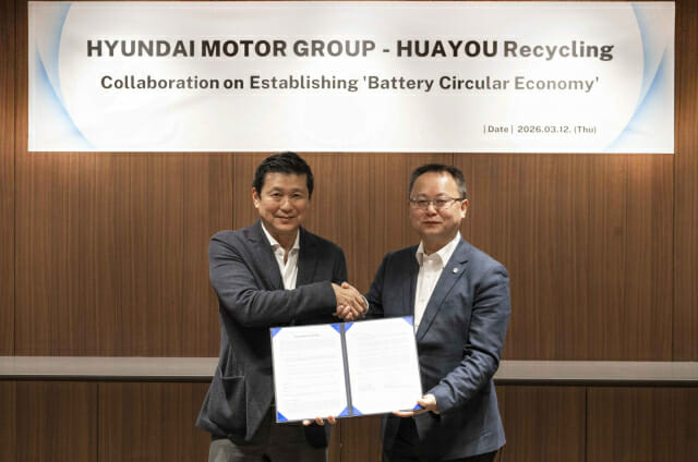 화유리사이클은 세계 1위 코발트 생산 기업 화유코발트의 배터리 재사용·재활용 사업 자회사다. 이날 협약식에는 정호근 현대차그룹 미래전략본부장(부사장)과 바오 웨이 화유리사이클 대표 등 양사 관계자가 참석했다.