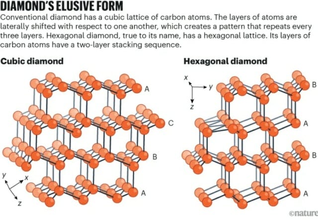 중국 연구진은 이번 연구에서 순수한 육각형 구조의 다이아몬드 시료를 처음으로 확보했다고 밝혔다. 이달 초 국제 학술지 네이처에 발표된 연구에 따르면, 연구진은 직경 약 1.5mm 크기의 순수 육각형 다이아몬드 샘플 여러 개를 제작하는 데 성공했다.