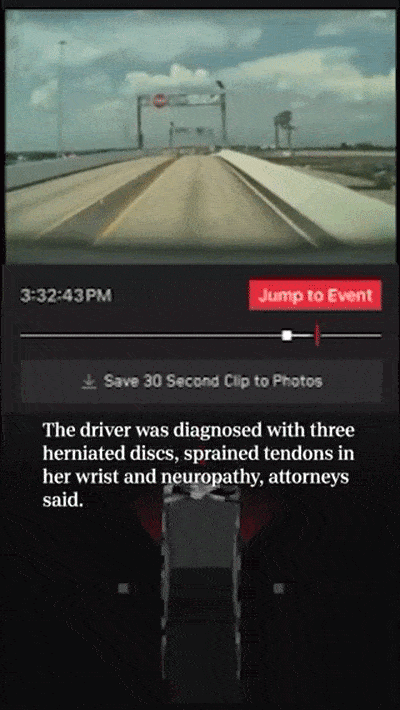 세인트 아모어는 차량이 경사로를 지나치게 빠른 속도로 올라가자 FSD 기능을 해제하려 했지만 대응할 시간이 없었다고 진술했다. 충돌로 인해 그는 목과 어깨, 허리 등에 심각한 부상을 입었다. 소송 문서에 따르면 목과 허리에는 각각 디스크 탈출 증상이 나타났고 오른손에는 저림과 근력 약화 증상이 발생한 것으로 전해졌다.