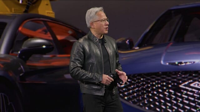 가죽 재킷을 입고 무대에 오른 젠슨 황 엔비디아 최고경영자(CEO) 뒤로 푸른색 제네시스 G70이 등장했다. 젠슨 황 CEO는 엔비디아 연례 개발자 행사 'GTC 2026' 기조연설에서 "이제 자율주행의 '챗GPT 순간'이 도래했다"며 현대차와 협력 의지를 밝혔다.
