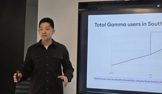 이번 신기능 출시 기념 글로벌 사용자 투어 첫 국가로 한국을 선택한 것도 이 물음에 대한 해답이 됐다. 리 대표는 “이번에 신기능을 발표하면 한국의 빠른 성장세가 이전보다 가속화되지 않을까라는 기대가 있다”며 “감마 도입률이 높은 배경은 한국이 PPT 에셋을 많이 만드는 곳이기 때문”이라고 말했다.