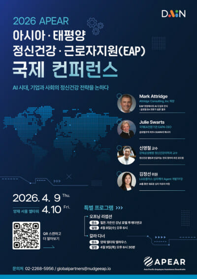 넛지헬스케어의 근로자지원프로그램(EAP) 전문기업 다인이 4월 9~10일 서울 양재 엘타워에서 ‘2026 APEAR’ 아시아·태평양 정신건강·EAP 국제 컨퍼런스를 개최한다.