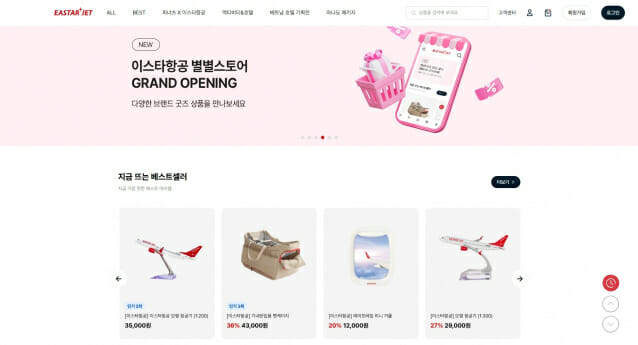 새롭게 구축된 이스타항공의 공식 쇼핑몰 '별별스토어'는 여행 경험 전반을 제안하는 라이프스타일 몰이다. 기존 기내에서만 구매할 수 있던 이스타항공 굿즈를 포함해 ▲호텔 ▲투어 ▲액티비티 등 경험 중심의 상품 라인업을 구축해 고객 접점을 여행 전반으로 확대했다. 이스타항공은 향후 굿즈와 여행상품 외에도 항공 부가서비스 등 브랜드 가치가 반영된 별별스토어 전용 상품을 지속적으로 발굴해 상품 포트폴리오를 확대할 계획이다.