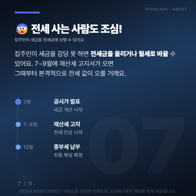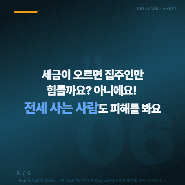 문제는 집주인만 힘든 게 아니라는 점이에요. 전세로 사시는 분들도 조심해야 하는데요, 집주인이 늘어난 세금을 감당하지 못하면 전세금을 올리거나 월세로 전환할 수 있거든요.
