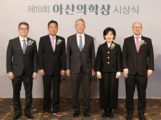 아산사회복지재단은 18일 서울 소공동 롯데호텔에서 제19회 아산의학상 시상식을 열고, 수상자 4명에게 총 7억원의 상금(기초의학부문 및 임상의학부분 각 3억원, 젊은의학자부문 각 5천만원)을 수여했다.