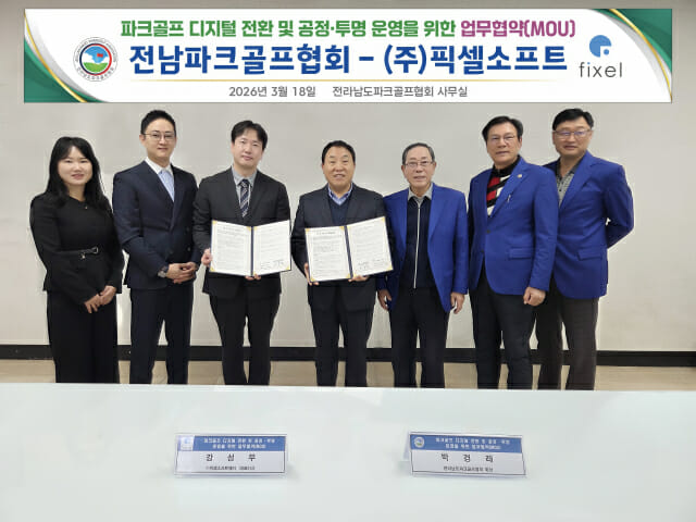 전라남도파크골프협회와 픽셀소프트웨어(대표 강성무)가 지난 18일 목포과학대학교 내 협회 사무실에서 ‘파크골프 디지털 전환 및 공정·투명 운영을 위한 업무협약’을 체결했다.
