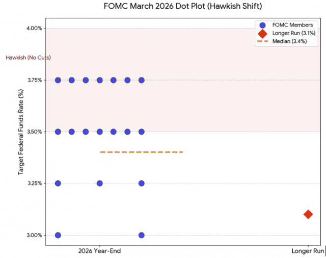 3월 FOMC 직후 공개된 점도표는 시장의 낙관론을 처참히 짓밟았다. 인플레이션이라는 거대한 파도 앞에 선 연준 위원들의(19명)의 ' 집단적 공포의 지도'였다.