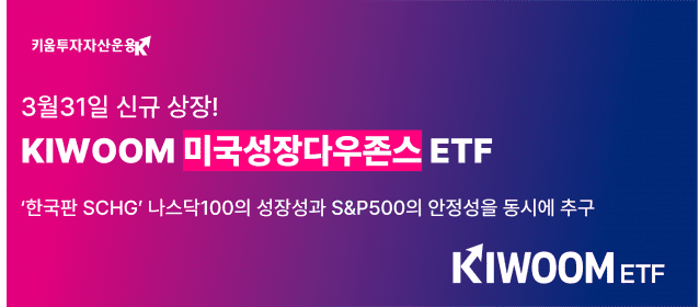 키움투자자산운용은 오는 31일 미국 대형 성장주에 선별 투자하는 ‘KIWOOM 미국성장다우존스 ETF’를 유가증권시장에 신규 상장한다고 30일 밝혔다.