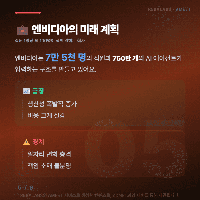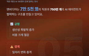 엔비디아는 아예 7만 5천 명의 직원과 750만 개의 AI 에이전트가 협력하는 구조를 만들고 있다고 하니, 정말 상상이 현실이 되고 있네요.