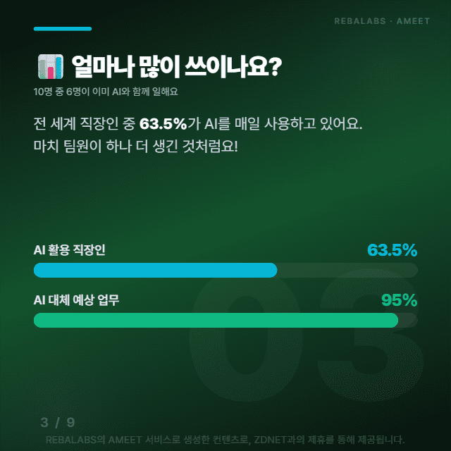 2026년이면 직원 1명이 AI 100명과 함께 일하는 시대가 온다고 해요. 믿기지 않으시죠? 하지만 이미 전 세계 직장인 10명 중 6명, 정확히는 63.5%가 매일 AI를 사용하고 있답니다.