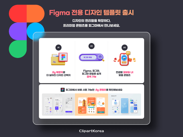 클립아트코리아가 이번에 선보인 서비스는 이런 비효율적인 과정을 없앤 것이 특징이다. 기존 PSD 형태로 제공되던 프리미엄 콘텐츠를 피그마 전용 파일 형식(.fig)으로 제공해 별도의 변환 과정 없이 복사•붙여넣기만으로 즉시 실무에 활용할 수 있도록 했다.