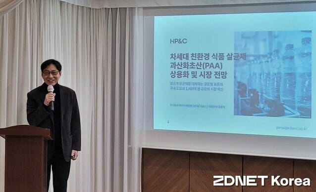 HP&C는 31일 ‘페라스타’ 간담회를 갖고 최근 식품의약품안전처가 식품용 살균제 현장 가이드라인 개정에 따라 과산화초산(PAA)이 차아염소산나트륨계를 대체할 차세대 친환경 식품 살균제로 주목받고 있다고 밝혔다.
