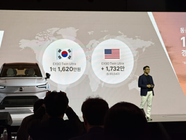볼보자동차는 전기차 시장에서 가격 경쟁력을 전략으로 삼았다. 실제로 EX90은 내연기관 동급 모델인 기존 XC90 T8(PHEV) 대비 약 1천만원 낮은 수준이다. 국내 출시 가격은 트윈 울트라 트림 기준 미국 소비자가격(MSRP) 대비 1732만원 저렴한 1억1620만원이다.