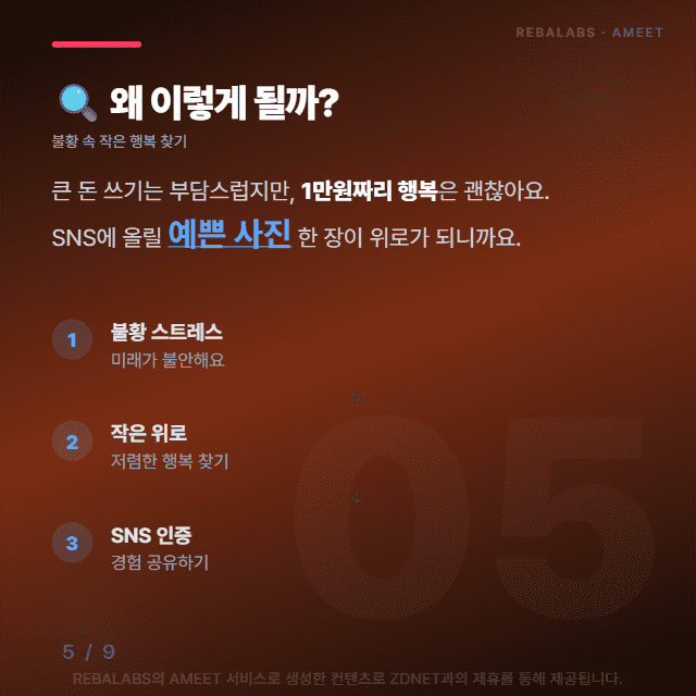 왜 이런 현상이 벌어질까요? 큰 돈을 쓰기는 부담스럽지만, 1만원 정도로 누릴 수 있는 작은 행복은 포기하기 어렵기 때문이에요.