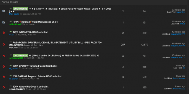 실제 불법 해킹 포럼 등 다크웹에서는 ID, 비밀번호, 이메일, 연락처 등이 담긴 개인정보를 헐값에 판매하는 것을 어렵지 않게 발견할 수 있다. 심지어 ID와 비밀번호 등을 함께 묶어 '콤보리스트(유출된 계정정보를 취합한 데이터베이스)' 형식으로 판매하기도 한다.
