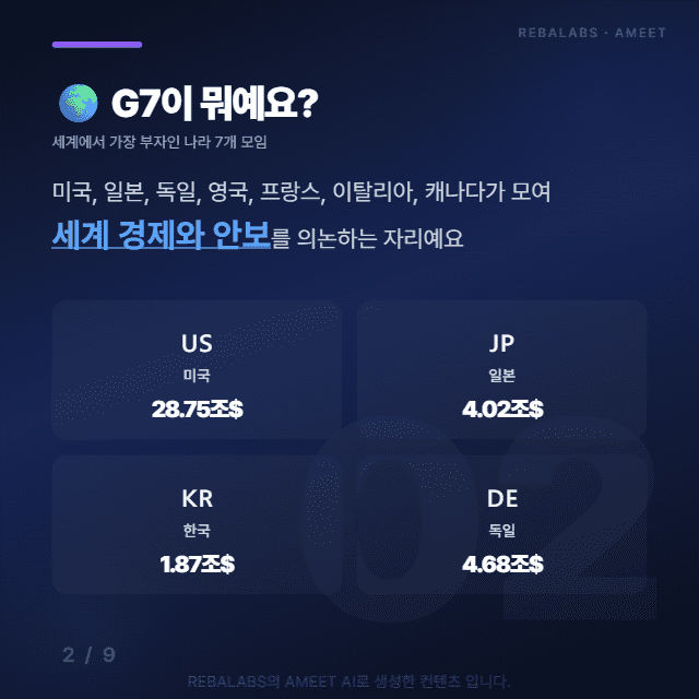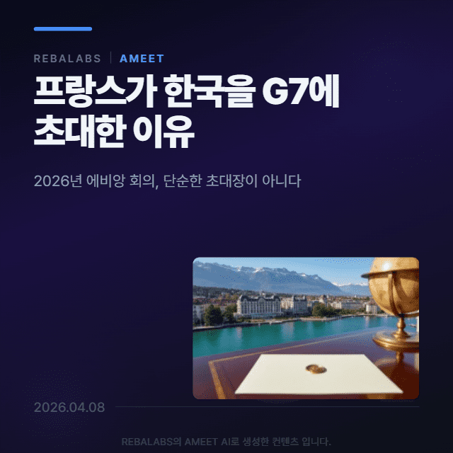 2026년 프랑스 에비앙에서 열리는 G7 회의에 한국이 초대받았어요. G7은 미국, 일본, 독일, 영국, 프랑스, 이탈리아, 캐나다 등 세계에서 가장 부자인 7개국이 모여 경제와 안보를 논의하는 자리인데요.