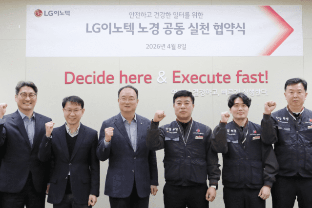 지난 8일 서울 마곡 LG이노텍 본사에서 열린 협약식에 문혁수 사장과 이중일 노동조합위원장 등 10명이 참석했다. 이들은 노경 공동 실천 선언문에서 열린 소통∙상호 신뢰를 바탕으로 안전한 일터 조성을 위한 최적 솔루션을 함께 도출하겠다는 의지를 밝혔다. 또, 구성원 삶과 일이 조화를 이루는 케어 체계를 구축하고, 신체∙심리 안정감을 바탕으로 직원 누구나 역량을 펼칠 수 있는 건강한 조직 문화를 실현하자고 약속했다.
