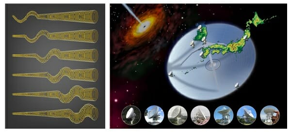 연구팀은 한국천문연구원 KVN(한국우주전파관측망)과 일본 국립천문대의 VERA(일본우주전파관측망)를 결합한 한일 공동 우주전파관측망(KVN and VERA 에레이 : KaVA)을 활용했다.