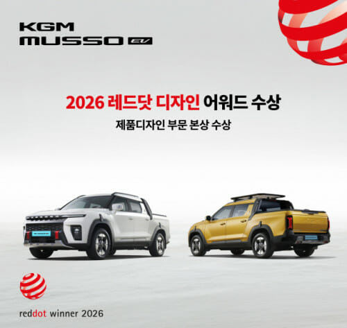 KG모빌리티(KGM) 전기픽업 무쏘EV가 세계 3대 디자인상으로 꼽히는 '레드닷 디자인 어워드 2026'에서 제품 디자인 부문 본상을 수상했다고 10일 밝혔다.