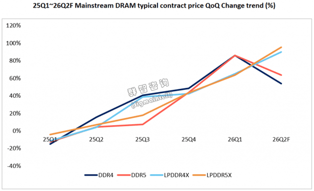 시장조사업체 시그마인텔은 최근 "2분기에도 D램 가격은 계속 오르겠지만 제품별 인상폭이 다를 것"이라며 "DDR4 가격 인상폭은 크게 줄어들 것이고, DDR5와 LPDDR5X는 상승 여력이 남아 있다"고 평가했다. 이어 "전세계 D램 평균가격 인상률은 1분기 70% 이상에서 2분기 30~50% 수준으로 둔화할 것"이라고 예상했다.