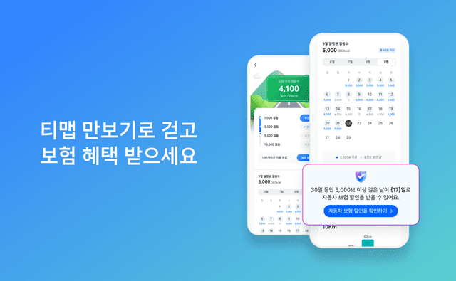 티맵모빌리티는 ‘티맵 만보기’를 통해 목표 걸음 수를 충족하면 자동차 보험료를 최대 9% 할인해 주는 ‘걸음 수 특약’ 상품을 선보인다고 15일 밝혔다.