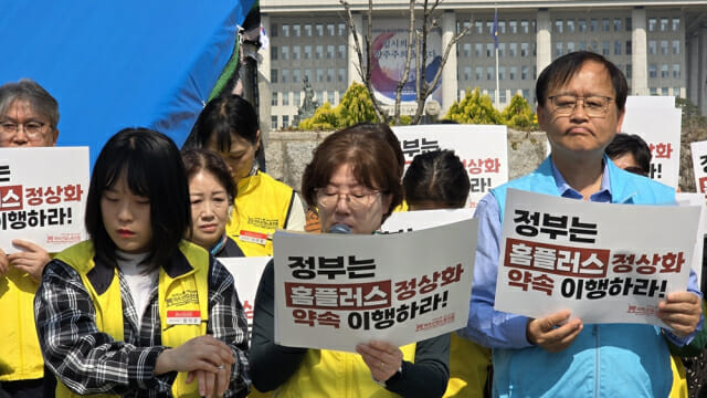 안수용 홈플러스 지부장은 “점포 운영은 흔들리고 현장의 불안은 커지고 있으며 노동자들은 생존의 위기 앞에 내몰리고 있다”며 “기업회생 마감이 불과 18일 앞으로 다가왔지만 정부의 책임있는 결단은 여전히 보이지 않고 있다”고 말했다.