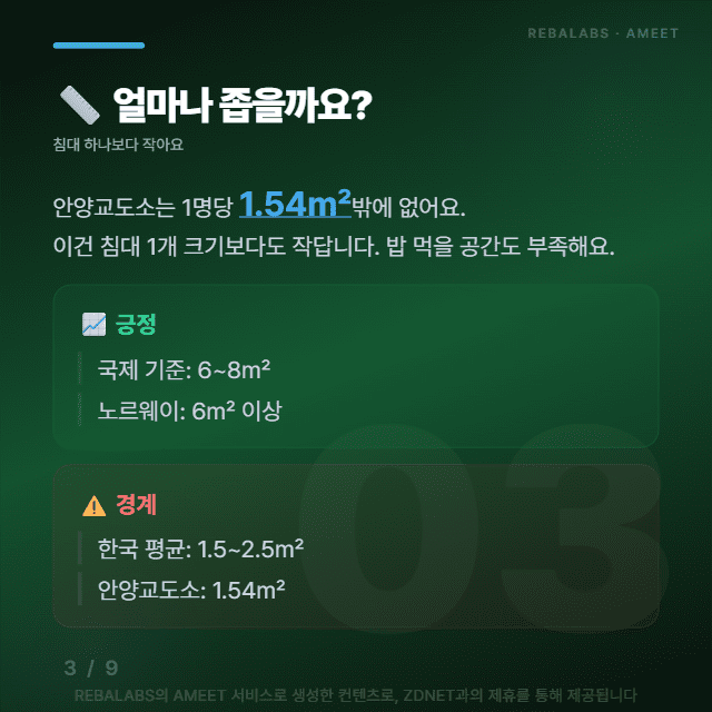교도소 과밀은 단순히 수용자들만의 문제가 아니라 우리 사회 전체의 안전과도 직결되는 문제예요. 앞으로도 AMEET이 이런 중요한 이슈들을 쉽고 정확하게 전해드릴게요!