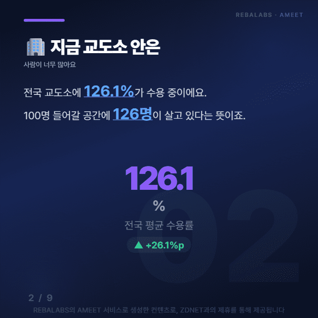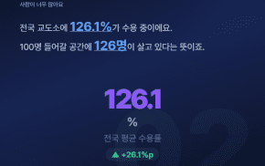전국 교도소 수용률이 무려 126.1%에 달하고 있어요. 쉽게 말하면 100명이 들어갈 공간에 126명이 빼곡히 들어차 있다는 뜻이죠.