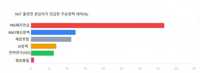 한편 과기연구노조는 이날 NST 소속 출연연 근무자 908명을 포함한 과학기술계 종사자 1,625명을 대상으로 이재명 정부 1년 과학기술정책 평가 및 출연연 혁신 과제에 대한 설조사한 결과도 공개했다.