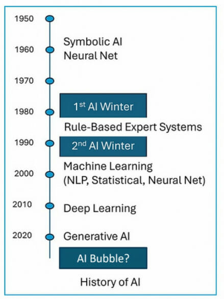 이런 점에서 당시의 분위기는 오늘날 생성형(Generative) AI에 대한 기대와 유사한 측면이 있다. 그러나 1980년대 후반부터 Expert system에 대한 과잉 기대가 조정되면서 시장이 급격히 위축됐고, 관련 전문기업들이 어려움을 겪거나 도산하는 사례가 늘었다. 이러한 흐름 속에서 1980년대 후반부터 1990년대 초반까지 이른바 AI 겨울(AI Winter)이 도래했다.