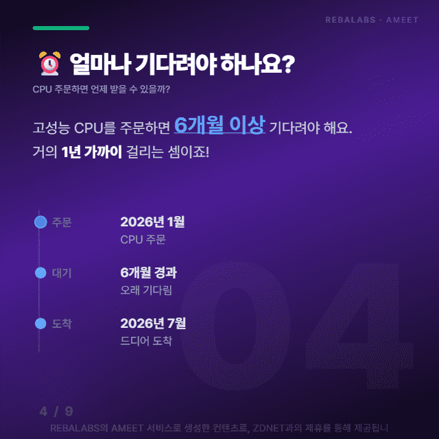 그런데 지금 전 세계 데이터센터들이 CPU 부족으로 비상이 걸렸어요. 고성능 CPU를 주문하면 무려 6개월에서 1년 가까이 기다려야 하는 상황이라니, 마치 인기 많은 맛집에서 예약을 기다리는 것 같죠?