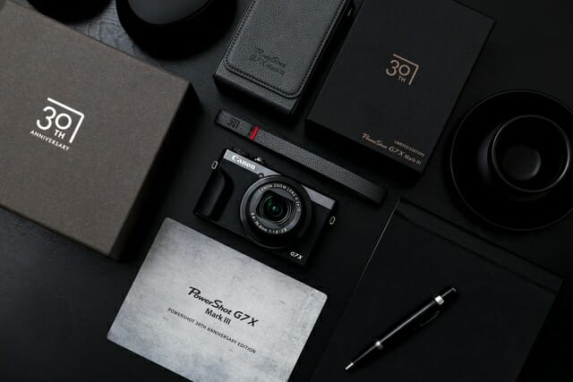 파워샷 G7 X 마크Ⅲ 30주년 에디션은 1인치 센서와 영상처리 엔진 '디직8', 35mm 환산 24-100mm의 광학 4.2배 줌 렌즈를 탑재한 기본 모델 기반으로 디자인 면에서 30주년 기념 요소를 더했다.