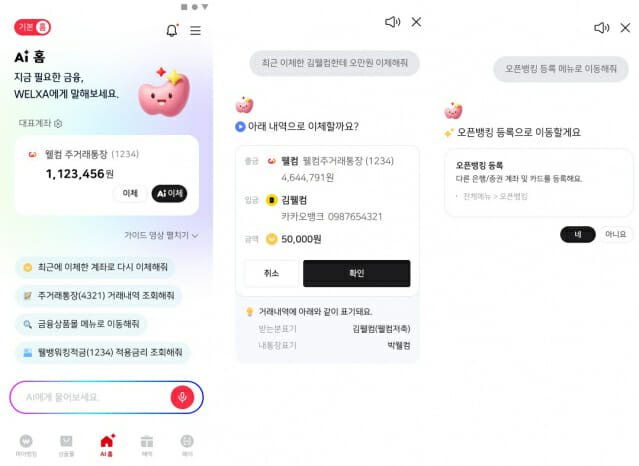 특히 서비스를 경험한 사용자들의 재사용률이 높은 것으로 나타났다. 말 한마디면 송금이 이뤄지고, 원하는 메뉴로 이동할 수 있는 직관적인 사용성이 강점이라는 게 웰컴저축은행의 설명이다.