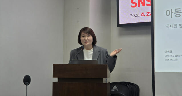 윤혜경 고려대 법학과 박사는 22일 서울 영등포구 국회의원회관에서 열린 ‘아동·청소년 SNS 규제추세에 따른 대응방안 모색’ 세미나에서 “(SNS 디지털 기록의 영구성은) 아동 개인의 의지나 부모의 관리만으로는 해결하기 어렵다”며 “플랫폼 자체가 처음부터 사용자를 최대한 오래, 자주 머물게 만들도록 설계돼 있는 구조적 문제이기 때문이다. 이로 인해 국가가 제도적으로 개입해야 한다는 목소리가 높아지고 있다”고 말했다.