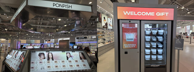 해당 층 한켠에는 기존 온라인에서만 볼 수 있던 뷰티 제품별 랭킹을 오프라인에서도 구현한 모습을 볼 수 있었다. 무신사 글로벌 앱 회원 가입자 대상으로 기념품을 증정하는 웰컴 기프트 머신과 5만원 이상 구매 고객을 대상으로 제공되는 뷰티 코인으로 뽑을 수 있는 뷰티 가챠도 눈에 띈다.