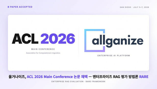 올거나이즈가 자연어처리(NLP) 분야 글로벌 권위 학회인 전산언어학회(ACL) 2026 메인 컨퍼런스에 제출한 논문이 최종 채택됐다.