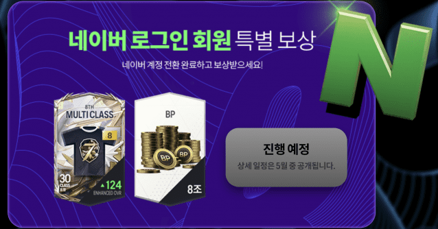 이용자들은 네이버 계정 전환을 완료하면 멀티 클래스 선수팩과 8조 BP 등의 인게임 보상을 받을 수 있으며, 상세한 일정은 5월 중 공개될 예정이다.
