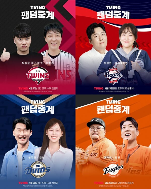 티빙은 2026 신한 SOL KBO 리그 주말 콘텐츠 ‘팬덤중계’ 4월 4주차 라인업을 확정했다고 24일 밝혔다.