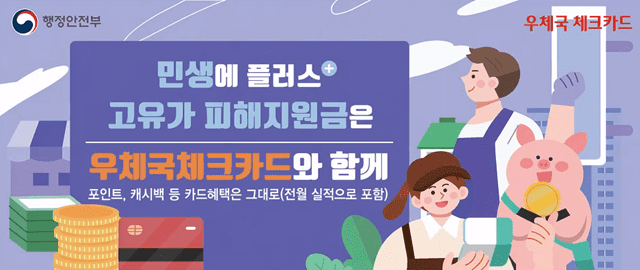 우체국을 통해 지원금을 신청하려는 가입자는 우체국 체크카드를 보유하고 있어야 하며, 체크카드가 없다면 우체국 창구와 우체국예금 홈페이지, 스마트뱅킹 앱에서 체크카드를 발급받은 뒤 신청할 수 있다.