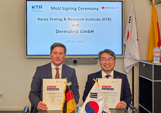 KTR(한국화학융합시험연구원·원장 김현철)은 국내 화장품 기업의 글로벌 인증 획득을 돕기 위해 독일 피부과학 시험인증 전문기관 ‘더마테스트’와 시험인증 협력체계를 구축했다.