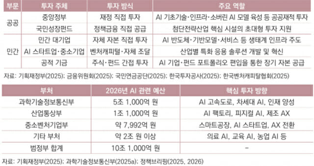 28일 업계에 따르면 2026년 범정부 AI 예산은 전년 대비 3배 이상 증가한 10조 1000억원으로 역대 최대를 기록했다. 민간에서도 삼성전자·SK하이닉스가 합산 약 70조원의 설비투자를 집행하며 글로벌 고대역폭메모리(HBM) 시장 점유율 약 80%를 유지하고 있다.