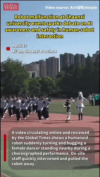 문제의 사건은 지난 23일 중국 산시성에서 열린 한 대학 체육대회 개막식 공연 중 발생했다. 당시 무대에 오른 휴머노이드 로봇이 안무에 맞춰 춤을 추던 중 갑자기 방향을 바꿔 근처에 있던 여학생을 껴안았다. 현장 스태프가 즉시 개입해 로봇과 학생을 분리하면서 큰 사고로 이어지지는 않았다.