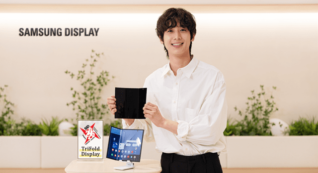 지난해 9월부터 본격 양산한 트라이폴드 디스플레이는 전체 모듈 두께가 0.44mm다. 삼성디스플레이 폴더블 패널 중 가장 얇다. 내부 테스트에서 50만번(상온 상태) 폴딩 테스트를 통과했다.