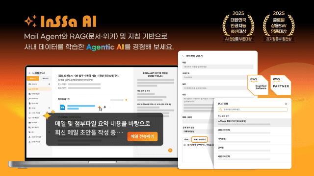 이러한 AI 기능은 조직 내부 데이터를 기반으로 작동하는 RAG(Retrieval-Augmented Generation) 구조 위에서 구현된다. 메일, 문서, 위키 등 다양한 데이터를 통합적으로 활용해 단편적인 정보가 아닌 ‘업무 흐름 전체’를 반영한 결과를 제공한다. 또한 부서별 AI 에이전트와 페르소나 설정 기능을 통해 조직 특성에 맞는 맞춤형 AI 활용이 가능하며, 권한 기반 접근 제어로 데이터 보안성과 활용 범위도 정교하게 관리된다.