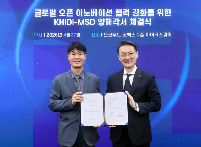 한국MSD는 한국보건산업진흥원(이하 진흥원)과 오픈 이노베이션 협력 강화를 위한 양해각서(MOU)를 체결하고, 국내 보건의료산업 및 유망 제약·바이오 기업의 글로벌 경쟁력 강화를 위한 상호 협력에 나선다고 밝혔다.