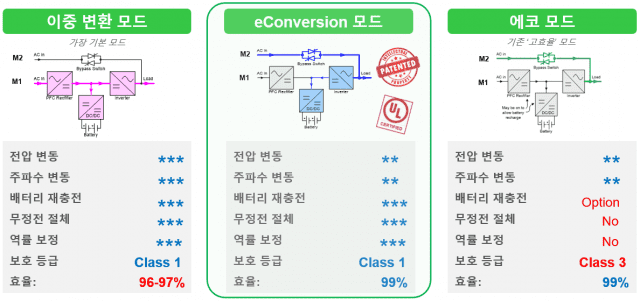 이컨버전과 이중 변환·에코 모드 비교 (사진=슈나이더 일렉트릭)