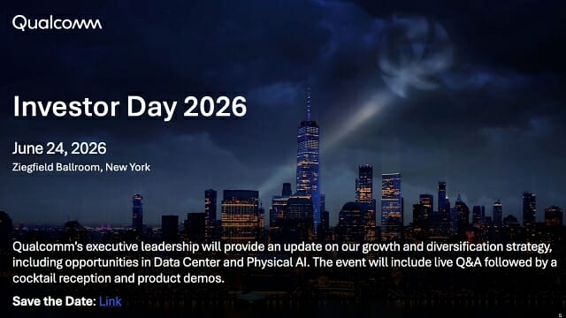 퀄컴은 오는 6월 24일 미국 뉴욕에서 진행하는 투자자 행사에서 데이터센터와 피지컬 AI를 포함한 성장 전략에 대해 추가로 설명할 예정이다.