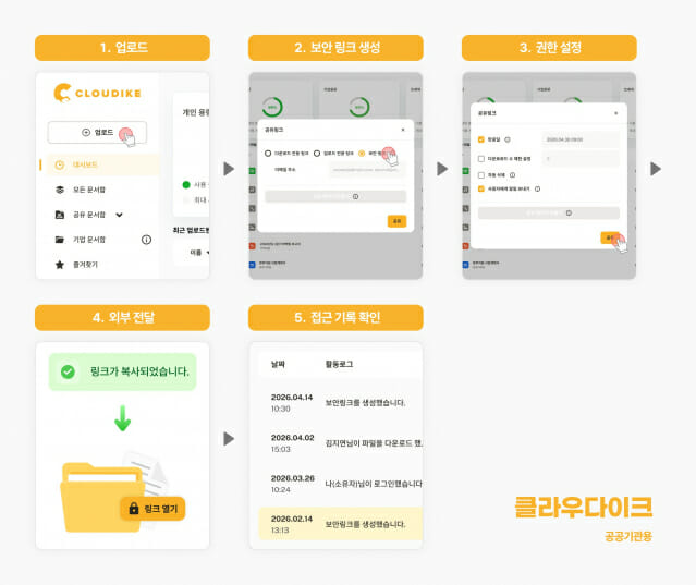 "외부 협업이 늘어나는 상황에서 기존과 같은 파일 관리 방식이 유지된다면 보안 리스크는 계속 확대될 수밖에 없습니다. 그런 점에서 클라우다이크는 단순 저장소가 아니라, 협업 과정에서 발생하는 데이터 흐름까지 관리할 수 있는 플랫폼으로 공공기관의 디지털 전환을 지원하고 있습니다."